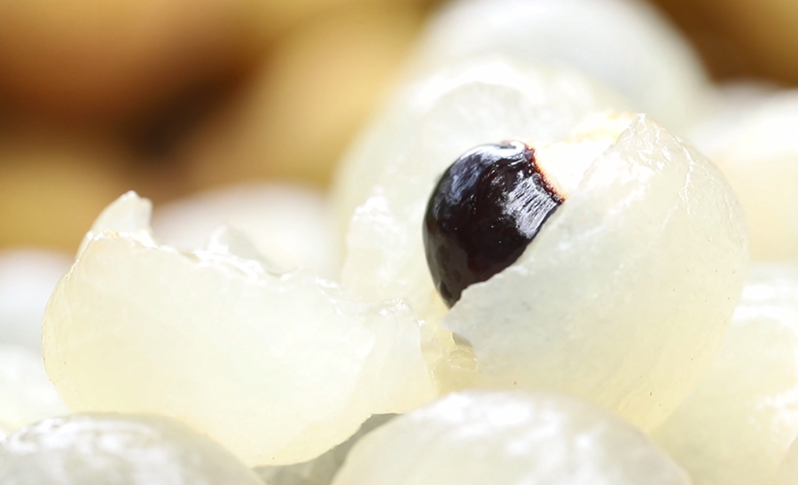龙眼和荔枝在分类学上分别属于龙眼属和荔枝属。“脆蜜”最初被称为“石紫脆蜜”,它是以石硖龙眼为母本,以紫娘喜荔枝为父本,通过属间杂交育种的方式,选育出的一个新品种。该品种兼具石硖龙眼和紫娘喜荔枝的一些优点,其果肉嫩脆,完全无渣,糖度高达20-24%,“‘脆’和‘蜜’很好地概括了它的特点。”刘成明说。