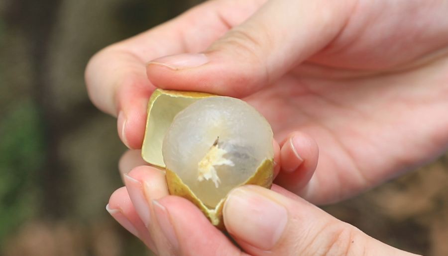 这个杂交品种究竟是荔枝还是龙眼呢?刘成明解释道,事实上,“脆蜜”仍然是一个龙眼品种,不过其果肉很嫩,这点与荔枝类似,另外,“脆蜜”果皮的龟裂片很明显,呈疙瘩状,这也是荔枝才有的特点。