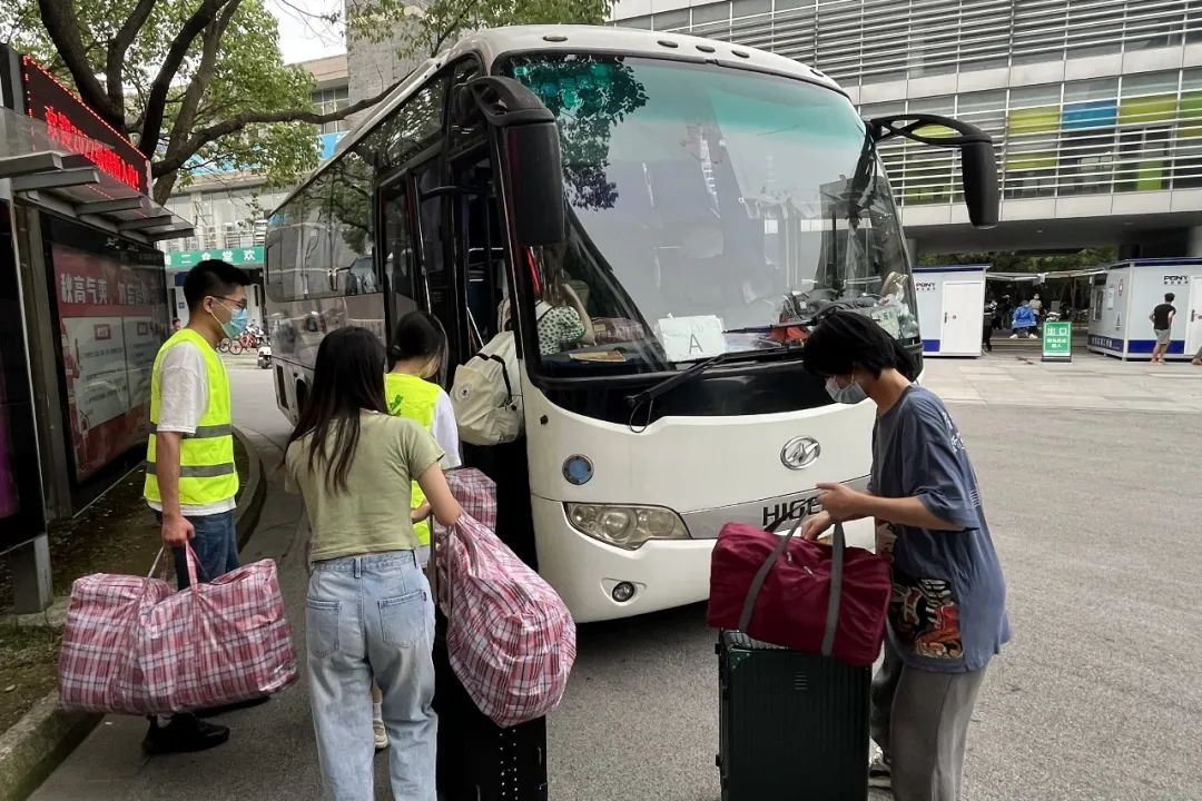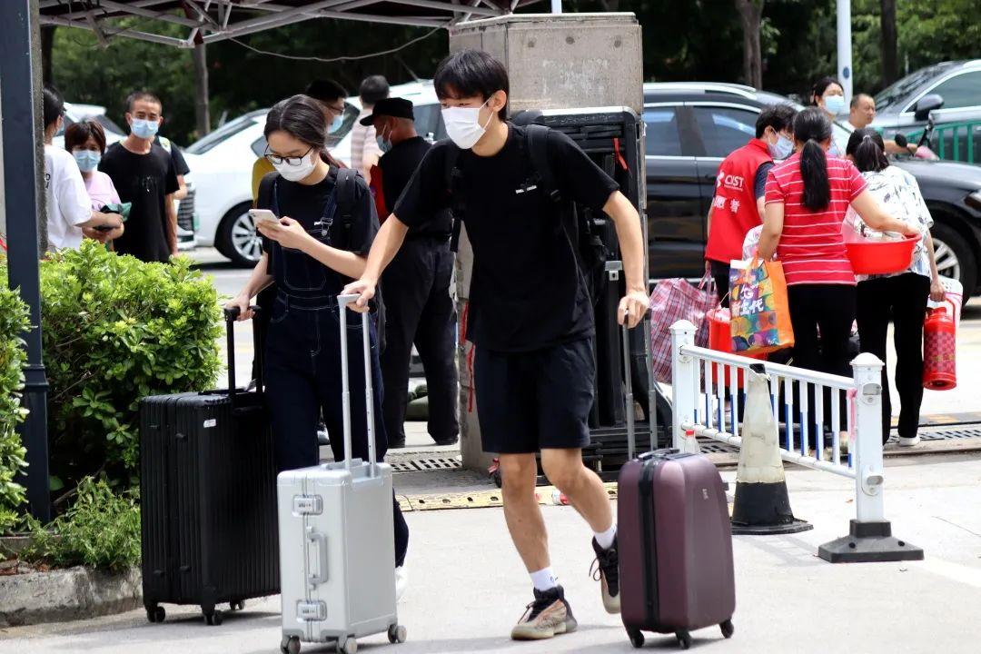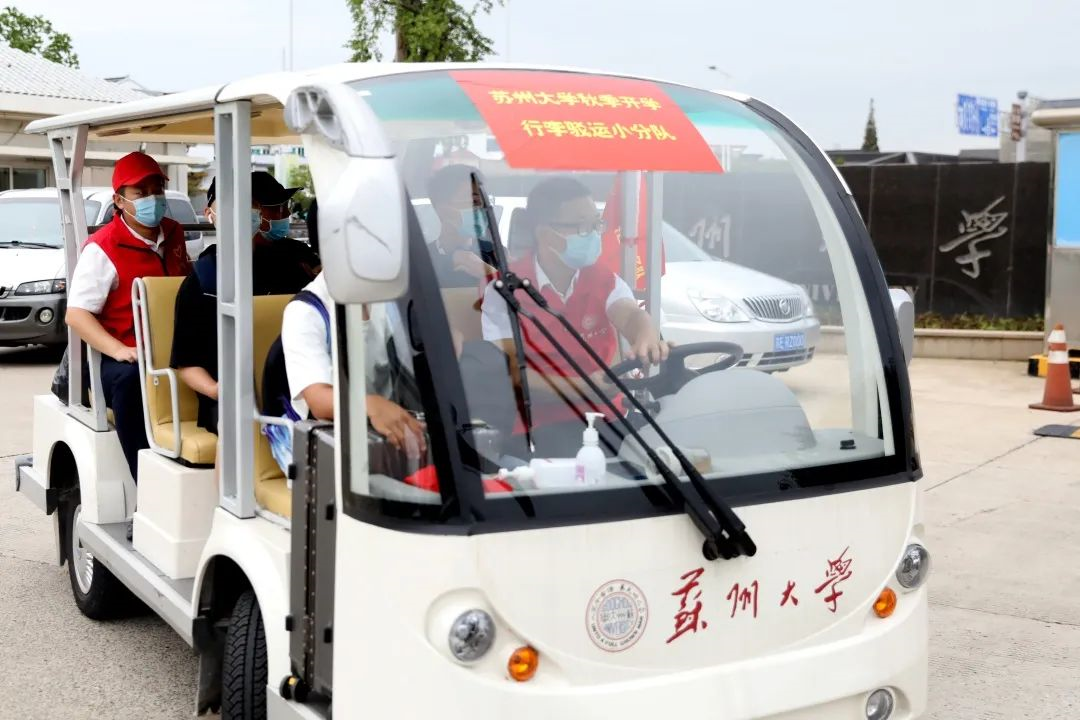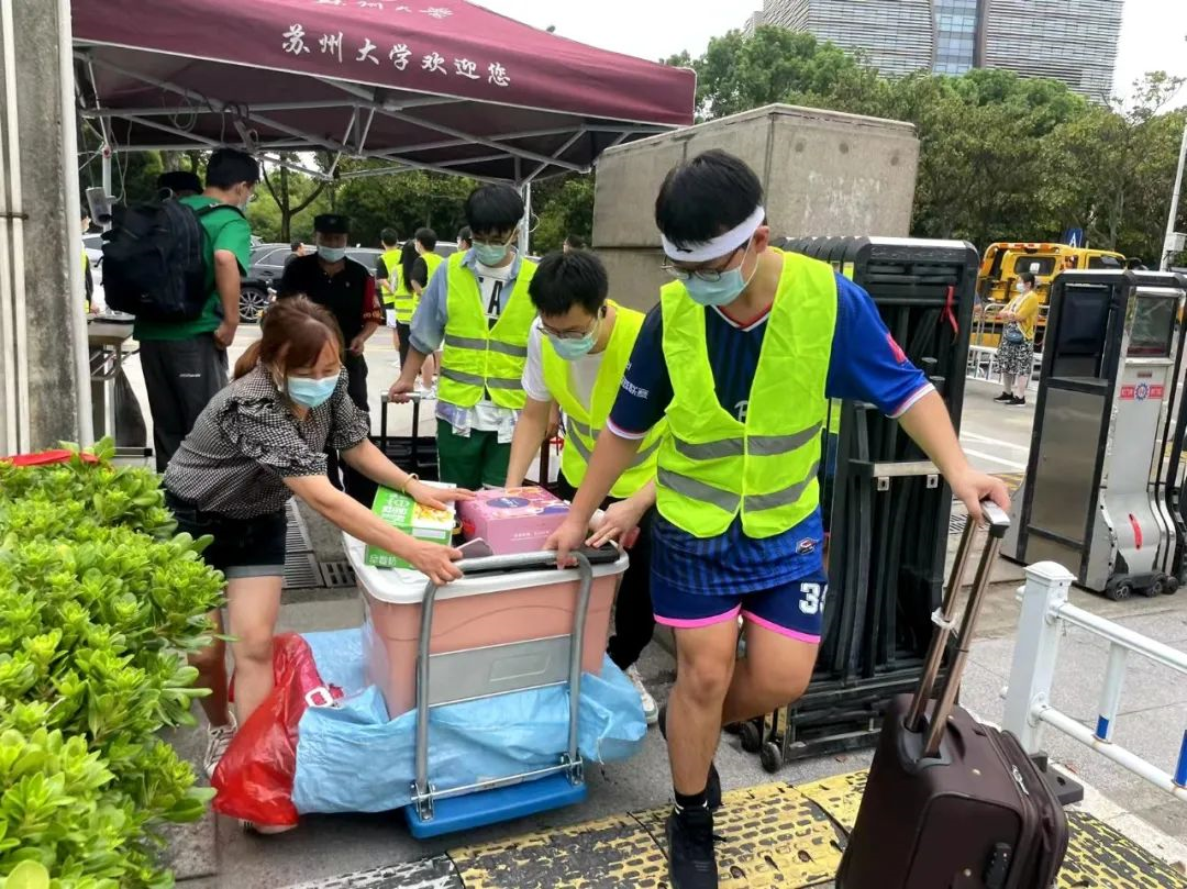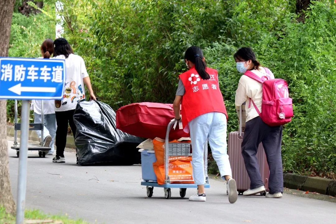 一大早,各学院(部)及相关部门便组织起“行李驳运小分队”,志愿者们早早便等候在校门口,帮助有需要的返校同学搬运行李。
