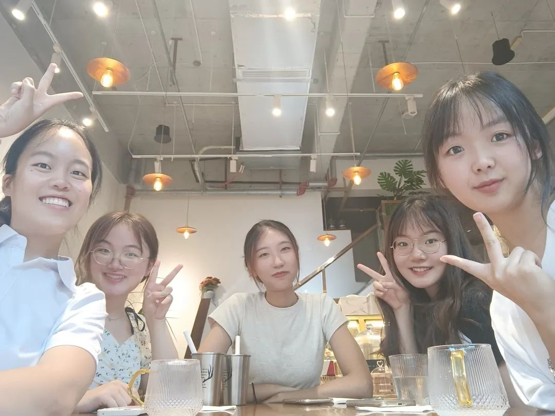 照片上的我们五个在高中是一个小组的。高中时我们每天都在一起,彼此陪伴着走过了难熬的高考时光,但上了大学大家各自开启新的生活,只能在假期见面。正因为有了距离,每次见面都更加满怀期待,只是一起坐着聊天,就能很快乐很快乐。虽然现在不能每天都见面,但幸运的是,冬天和夏天的假期,我们总能聚在一起。