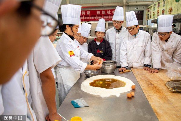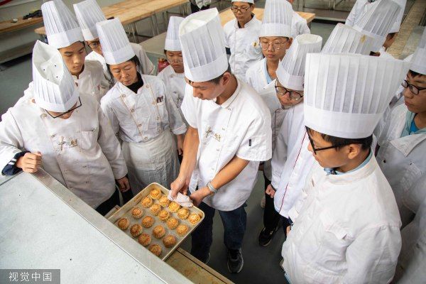 山西运城:烹饪专业学生为老师制作枣泥月饼 迎接教师节中秋节
