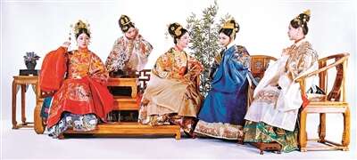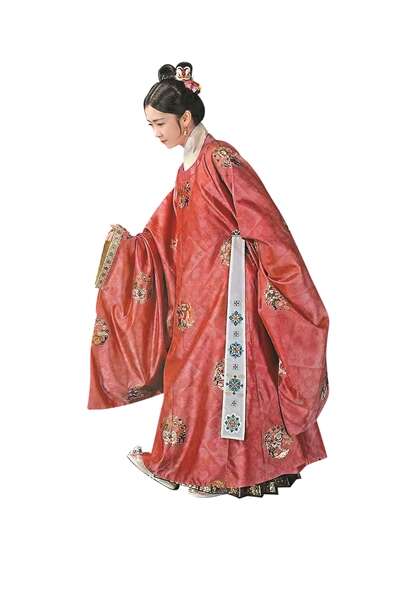 镜头前的男子打着哈欠,从架子床上坐起来,在侍女的帮助下,以网巾束发,再佩戴束发冠,就完成了上朝前的第一步准备。着装时,一层衬袍,一层交领、大襟、右衽,由白纱制成的中单,领、襟、袖分别施以深青色缘边的赤色纱朝服;还有以赤色罗制作,配有青色缘边的“下裳”按照先衣后裳的顺序,依次穿搭。