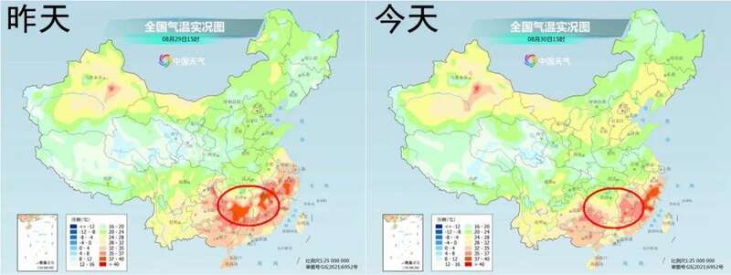 8月29日气温上榜的湖南、江西等地