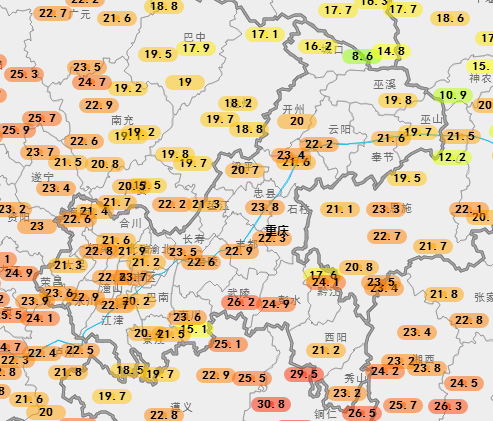 重庆大部气温都在20℃出头