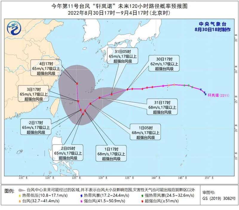 由于“轩岚诺”的未来行进路线上