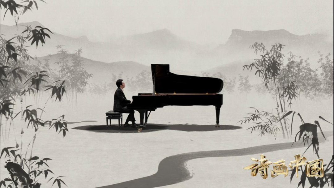 钢琴家郎朗置身明代画家徐渭的《杂花图》卷中,和交响乐队共同奏出一曲数字水墨交响。十三种花草果木、三首中西方经典音乐在黑白琴键与舒展水墨之间交融,呈现出“等量齐观”的自然观。