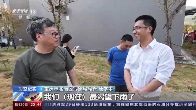 重庆市北碚区气象局局长 唐学术:我们(现在)最渴望下雨了,29日好像(也下不下来),也悬。温度可能降下去了,但是雨不晓得降不降得下来,最后的倔强,所以看能不能让(雨)提前点来,着急呀,我们8月份一颗雨水没有降。