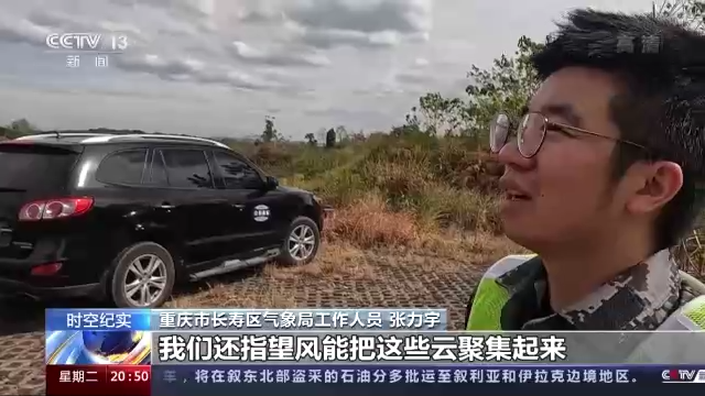 重庆市长寿区气象局工作人员 张力宇:这个云团已经打不下来什么东西了。主要是它只有一块,面积太小了,它可能上去过后一反应就打散了,(雨)还没等到落下来它就已经蒸发掉了。