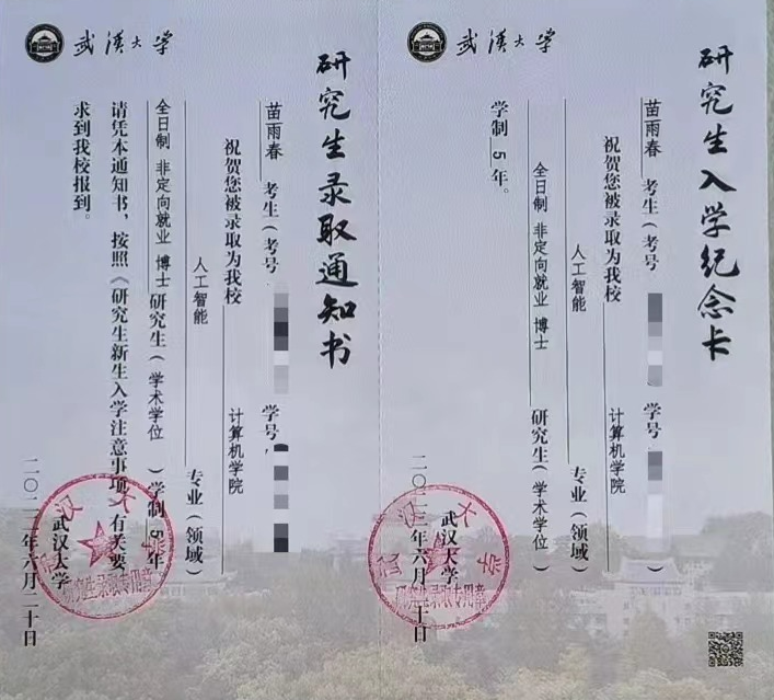20岁,当大部分人还在读本科的时候,2001年10月份出生的苗雨春却已收拾行装,即将以博士新生的身份来到武汉大学报道,在武汉大学计算机学院开启研究生生涯,还有自己21岁的生日。
