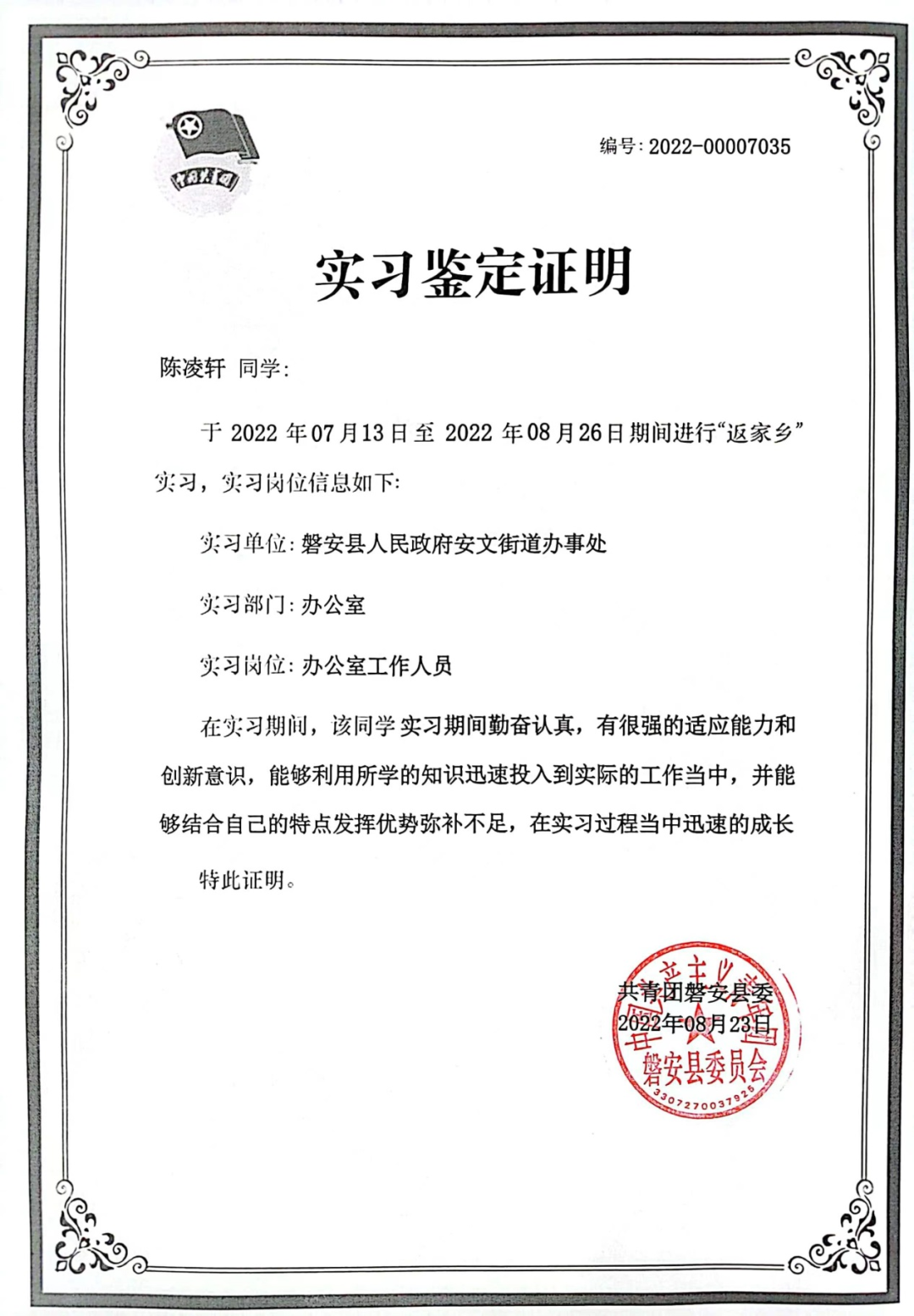 陈凌轩参与“返家乡”暑期大学生社会实践