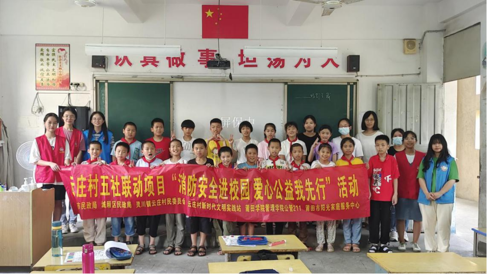暑期炎炎,在学生们尽情欢乐的同时,也隐藏着许多安全隐患。为使莆田市城厢区灵川镇云庄小学的学生们能够度过一个快乐、安全的暑假,6月22日,由莆田市民政局、城厢区民政局指导,灵川镇云庄村民委员会、云庄村新时代文明实践站主办,莆田市阳光家庭服务中心承办,莆田学院管理学院公管211班妙妙屋小分队协办的“消防安全进校园,爱心公益我先行”主题活动在云庄小学开展。
