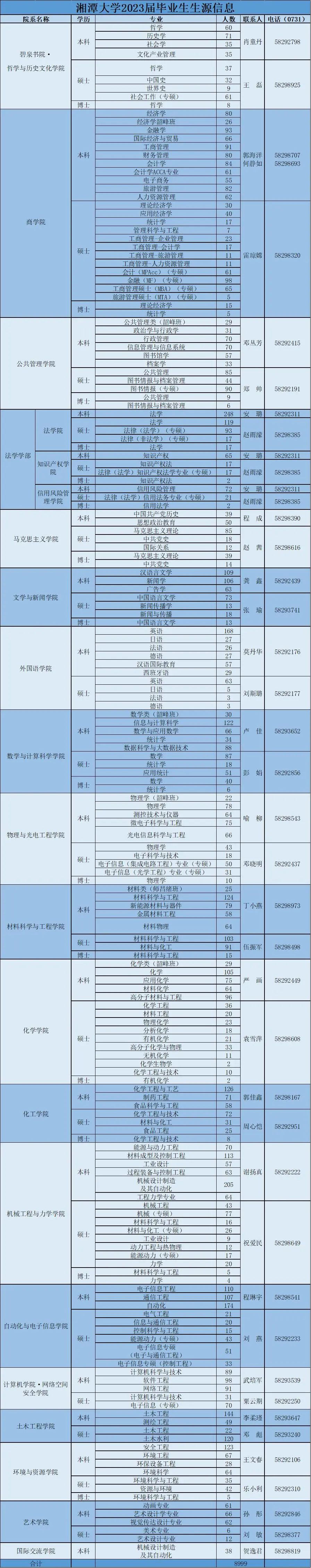 湘潭大学2023届毕业生生源信息