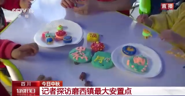 总台央视记者 刘京:地震过后,孩子们如何走出来,恢复到日常的心境?每天,老师和孩子们就在做这样的功课。今天,孩子们在做月饼,用橡皮泥捏的月饼五花八门,每个月饼都是孩子们心中的一幅画,都表达了对未来美好生活的向往。志愿者们陪孩子过中秋,用心给孩子们一个温暖的空间。