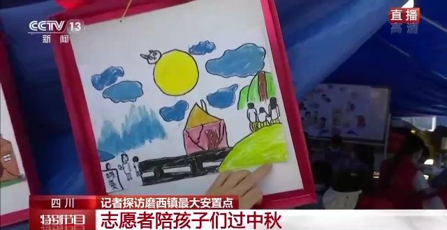 总台央视记者 刘京:在泸定县磨西镇最大的受灾群众安置点,每天都有志愿者陪伴孩子们做手工、画画、讲故事,来疏导他们的情绪。