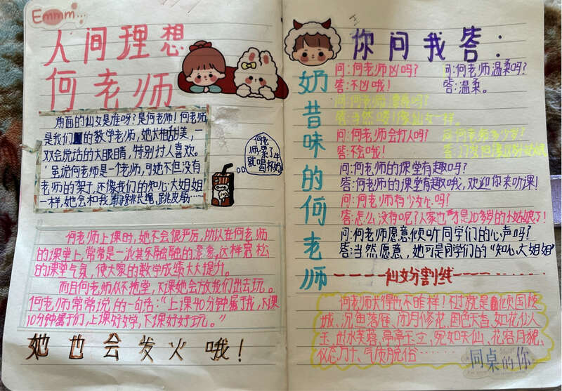 2021年9月15日,云南省昭通市盐津县滩头乡中心完小,学生王钰婷送给何朝宣老师的礼物,上面写满了学生对老师的印象。何朝宣/摄