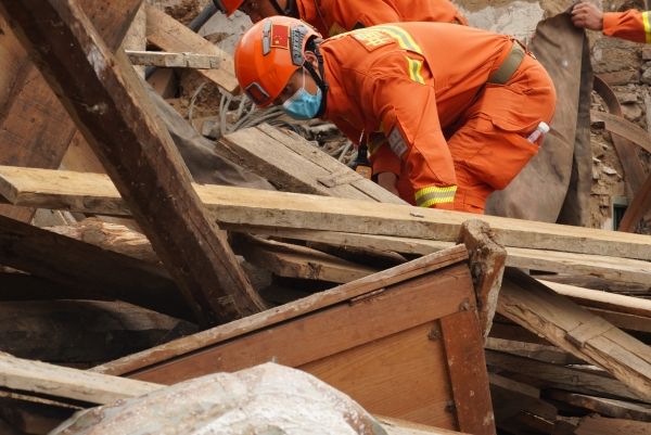 2022年9月8日,四川甘孜,苟磊和战友搜索失联人员。