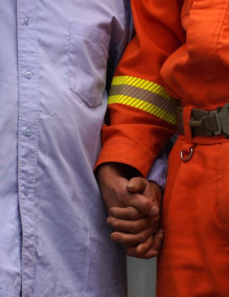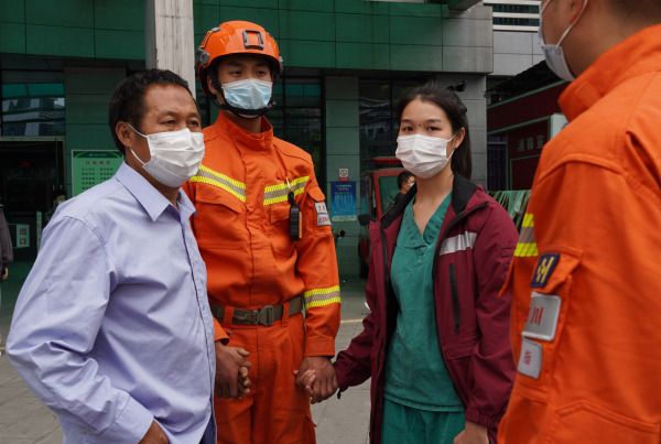 2022年9月7日,四川甘孜,苟磊紧紧握住父亲的手。