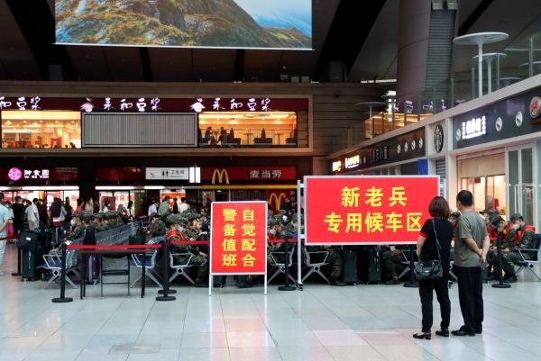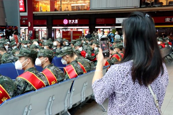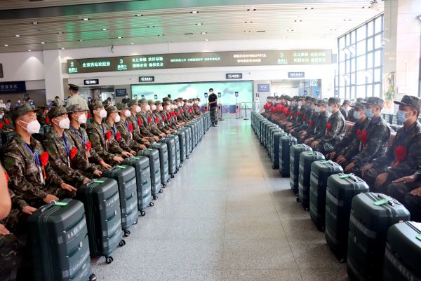 2022年9月16日,北京市2022年秋季入伍部分新兵分别在北京南站、北京西站集结,准备启程奔赴祖国各地军营。