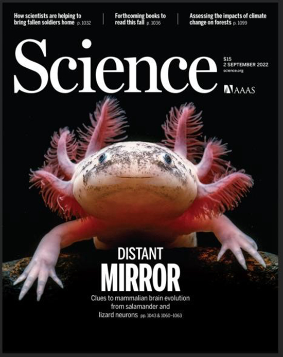 9月2日,华大生命科学研究院主导完成的首个蝾螈脑再生时空图谱,以封面文章形式发表于国际学术期刊《科学》(Science),这也是全球首个脑再生时空图谱。