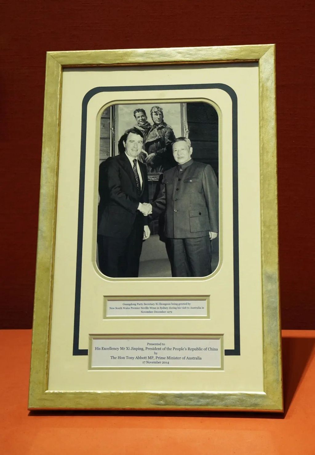 这是自1988年起,习近平第5次踏上澳洲大陆。为了欢迎这位“最了解澳大利亚的中国领导人”,澳方挑选了一件充满温情的礼物——习仲勋于1979年11月底至12月初访澳的一张照片。