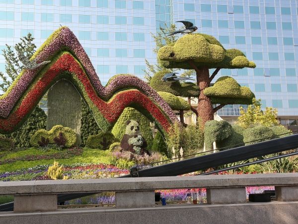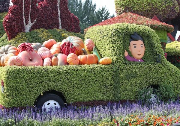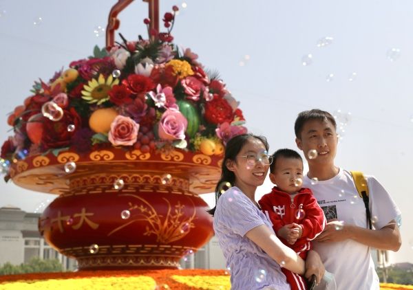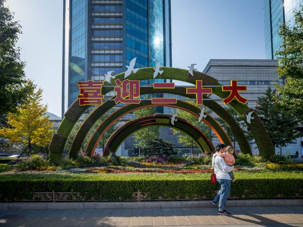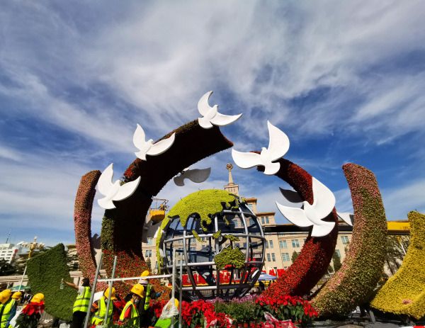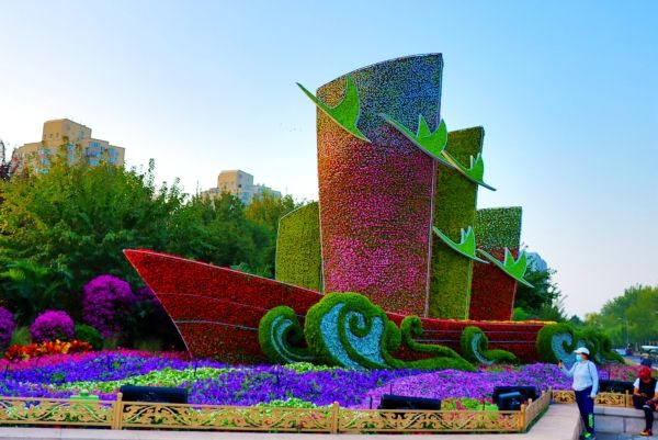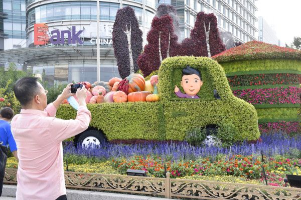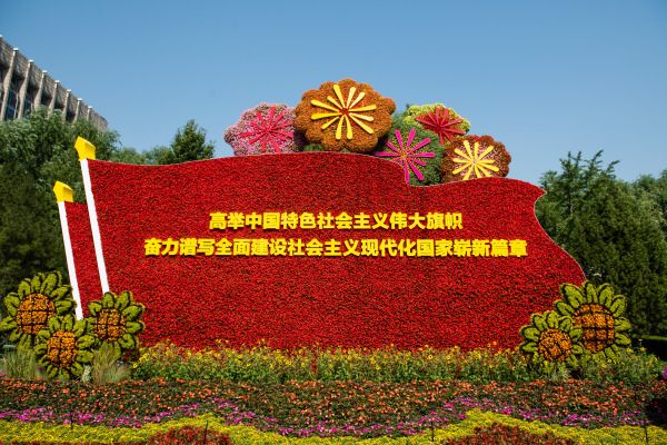 2022年9月24日,北京,长安街沿线的国庆花坛正加紧布置,部分已陆续亮相。