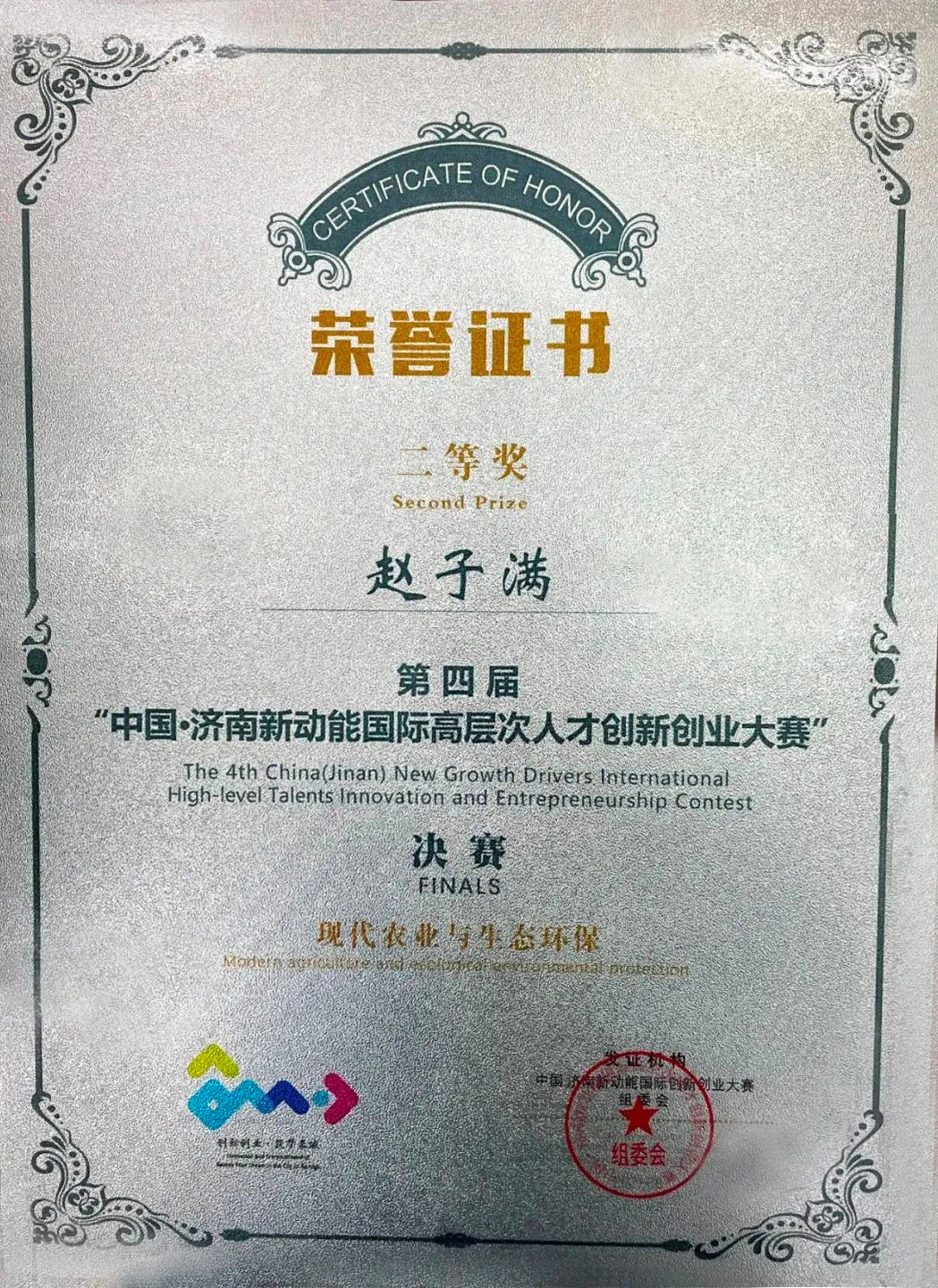 硕士期间,曾获得国际级、省级、校级创新创业奖项多项,在导师带领下组建团队成立初创公司,全力推进“全生物降解海藻干地膜”项目产业化,曾代表创业公司赴海阳、蓬莱等地参加项目座谈会,力促创新成果落地,为解决世界白色污染问题贡献智慧和力量。