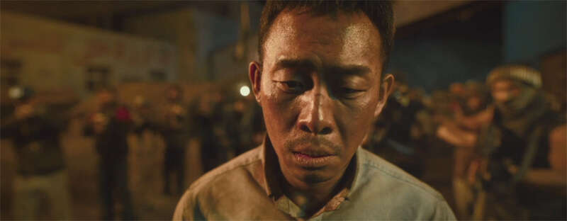 因为疫情原因,《万里归途》只能在国内取景,努米亚的一切都是在国内置景完成。但假若不提及这一点,观众也很难发现细节上有什么大的破绽,足见国产电影工业化水平的提升。在情绪感染力很强的配乐的带动下,观众很容易沉浸在电影营造的暴乱氛围里——死亡是随机事件,紧张感由此产生。