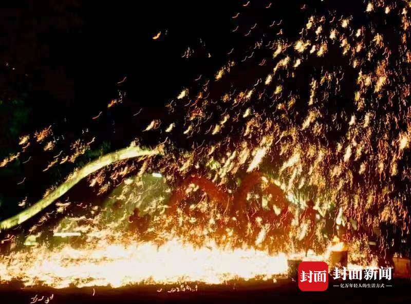 “再烫也不能丢了手中的龙,这是舞龙人最基本的看家本事。”苏磊说,为什么舞龙人要光着上身,原因是为了避免火花点燃衣服,贴着皮肤更容易烫伤。虽然有习俗认为,皮肤烫出了“泡",寓意更好,但舞龙人要把烫伤控制在可控范围内。