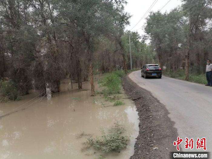 记者驱车在胡杨林里,看到成片的胡杨林里漫灌着水,夏马勒国有林管理局护林一队副队长窦和平告诉中新网记者,近10年来,每年夏季和秋季,引叶尔羌河的水给胡杨“解渴”,胡杨林才有了现在生机勃勃的局面。