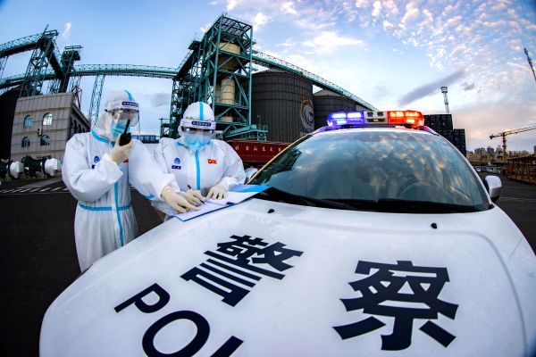 2022年10月4日,青岛港,国庆期间,出入境边检站持续推进“警灯闪烁”工程,采取步巡、车巡、无人机及电子监控相结合的方式,24小时不间断对辖区进行全方位、立体化巡查防控,确保节日期间口岸安全稳定。