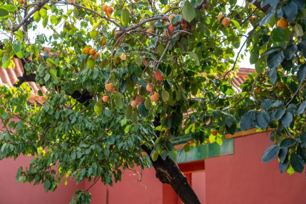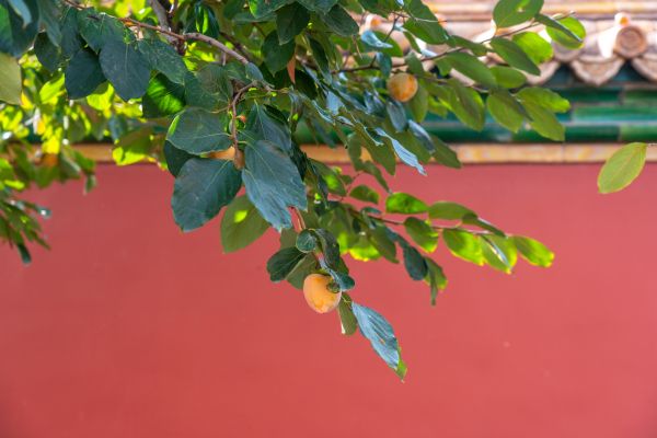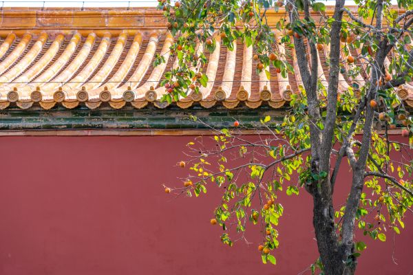 2022年10月5日,北京,国庆金秋,故宫柿子红了,在红墙金瓦的映衬下格外好看。