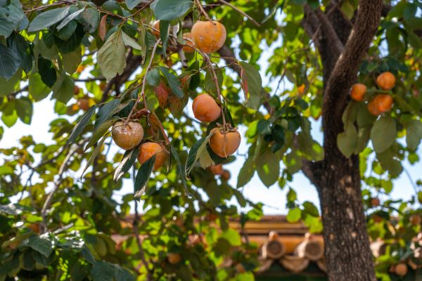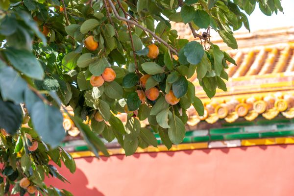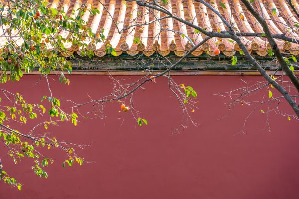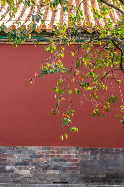 北京:故宫柿子成熟 与红墙相映成景