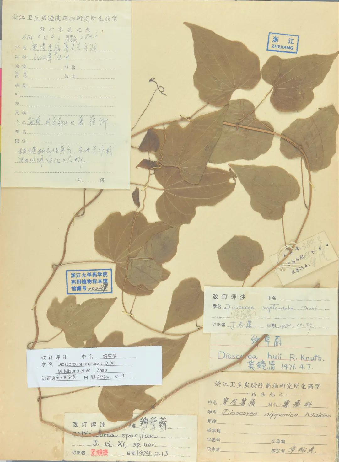 证实了浙江省内新种绵萆薢的存在