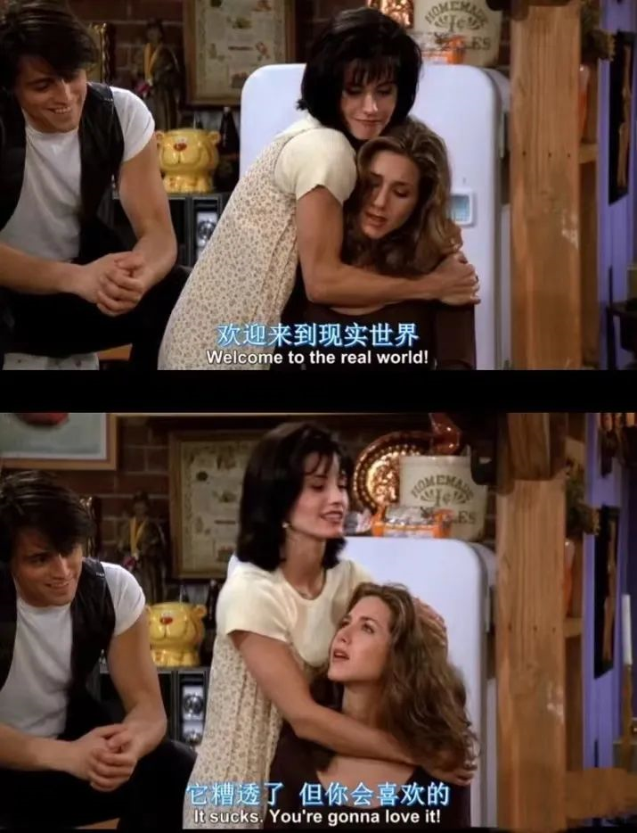 讲到这里,突然想到《老友记》中的一句台词“欢迎来到现实世界,虽然它糟透了,但是你会喜欢的。”剧中的人物或多或少经历过分手。每一次分手,都让人沮丧。但这份沮丧,也让他们成长了。