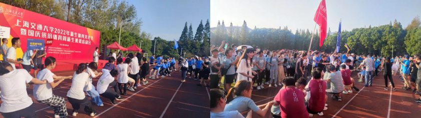 10月1日,在庆祝中华人民共和国成立73周年之际,上海交通大学2022年新生体育文化节开幕式暨国庆缤纷体育周新生班级运动会在闵行校区南区体育场顺利举行。校党委副书记、副校长王伟明,学指委秘书长、学生处处长方曦,体育系党总支书记龚强、常务副系主任王坤等领导出席活动,为拔河比赛鸣笛,与来个各个院系的2022级新生一起,以昂扬的运动姿态,为祖国母亲73周年生日庆生。