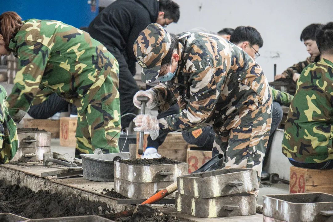 @林同学:当进入铸造的实训基地,看到一堆沙子和一些工具时,我很惊讶。我实在无法将铸造与玩沙子结合起来,一个那么严肃,一个又那么童趣。听完老师的讲解后,我才恍然大悟。原来这是砂型铸造。一下午的铸造体验,我深深感受到了劳动人民的智慧,每个人都应该尊重劳动。
