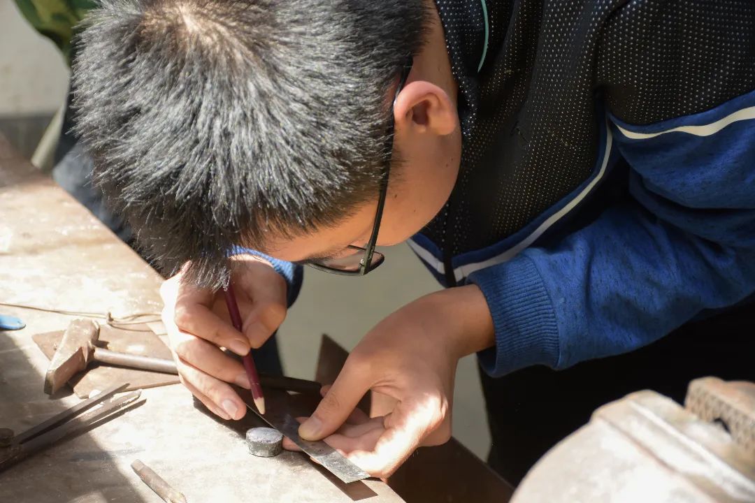 @曾老师:我们实践部有讨论过,是不是钳工太难了,是不是可以取消或者是简化。后来我们一致认为钳工,以及一些传统的磨铣工种,学生是很有必要去学习、去实践的。如果传统的原理、过程没有弄懂的话,又怎知技术如何传承,怎么理解数控加工、智能制造的程序内涵呢?学习传统的工种,是为学习现代技术打下一定基础。钳工可能真的很累,但动手操作性也是很强的。学生平常很少动手实践,就趁此体验劳动、锻炼动手实践的能力吧。