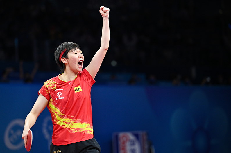 中国女将太稳了!陈梦3:0木原美悠、王曼昱3:1伊藤美诚、孙颖莎3:0长崎美柚,延续着本届世乒赛开赛以来只以“3:0”战胜对手的“传统”,中国女队今晚在成都世乒赛女团决赛上继续以3:0战胜老对手日本队。在实现世乒赛女团五连冠的同时,也在世界乒乓球历史上继续刷新着捧起考比伦杯最多次数的纪录(第22次)。今晚这场比赛,中国女队派出去年在东京奥运会上夺冠的最强阵容:陈梦、孙颖莎、王曼昱。日本女队则已经进行了人员大换血,除了伊藤美诚这个老面孔之外,木原美悠、长崎美柚均为新人。不过,尽管日本队阵容有变,但面对实力超群的中国女队,还是很难占到任何便宜。再一次夺得世乒赛女团亚军,可能就是这个时代日本女队的最好结果了。祝贺中国女队!