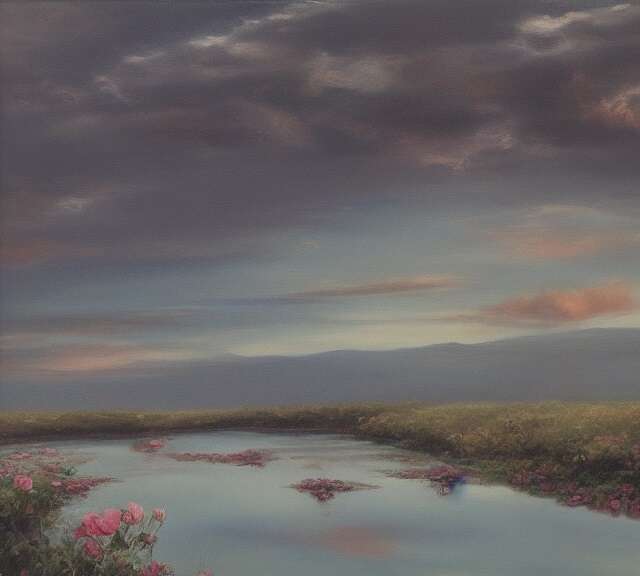 AI是如何作画的?记者先尝试了海外网站dreamstudio。在调整好画幅尺寸等信息后,记者在“梦想”的空白栏中输入了“玫瑰”“云层”“河流”等关键词,并以“油画”为风格,等待十几秒后AI便生成了一幅传统风格的风景油画:河岸生长着粉色的玫瑰花,夕阳照耀下的云朵倒映在河流中。