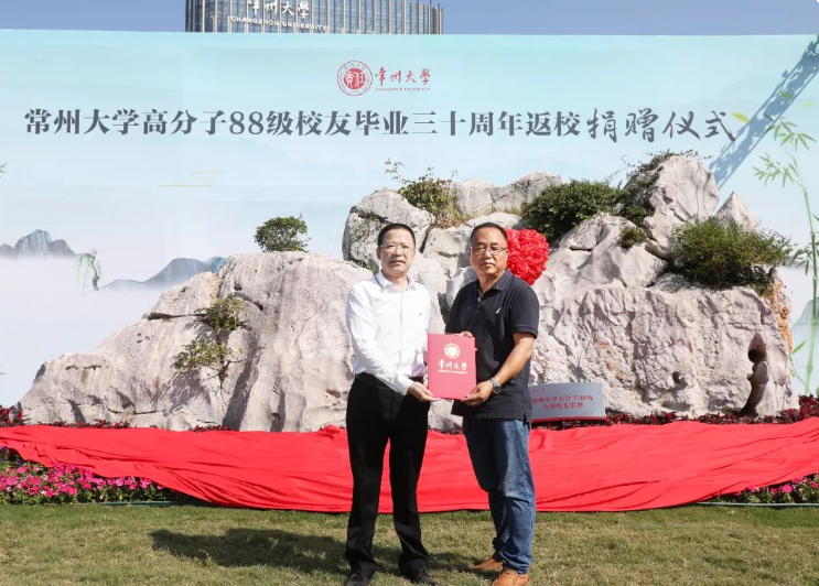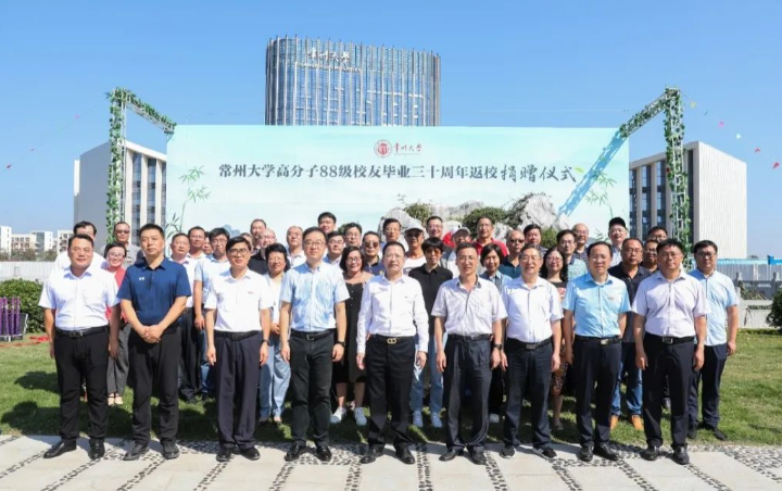 10月3日上午,常州大学高分子88级校友毕业三十周年返校捐赠仪式在常州大学西太湖校区“白云印象”主题公园举行,党委常委、副校长、校友总会副会长兼秘书长陆锦冲出席活动并讲话,无锡职业技术学院党委书记、常州大学无锡校友会会长、高分子88级辅导员龚方红,高分子88级全体返校校友,学校相关职能部门负责人,材料科学与工程学院党政班子全体成员出席活动。