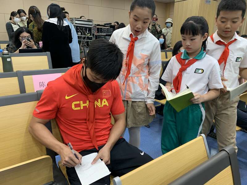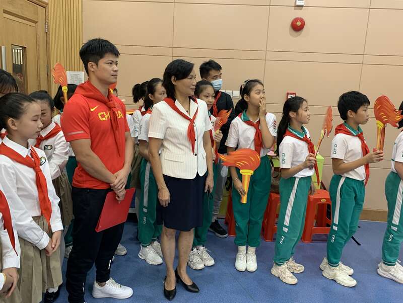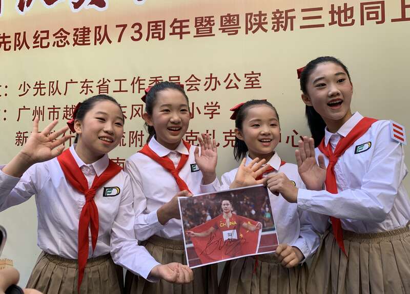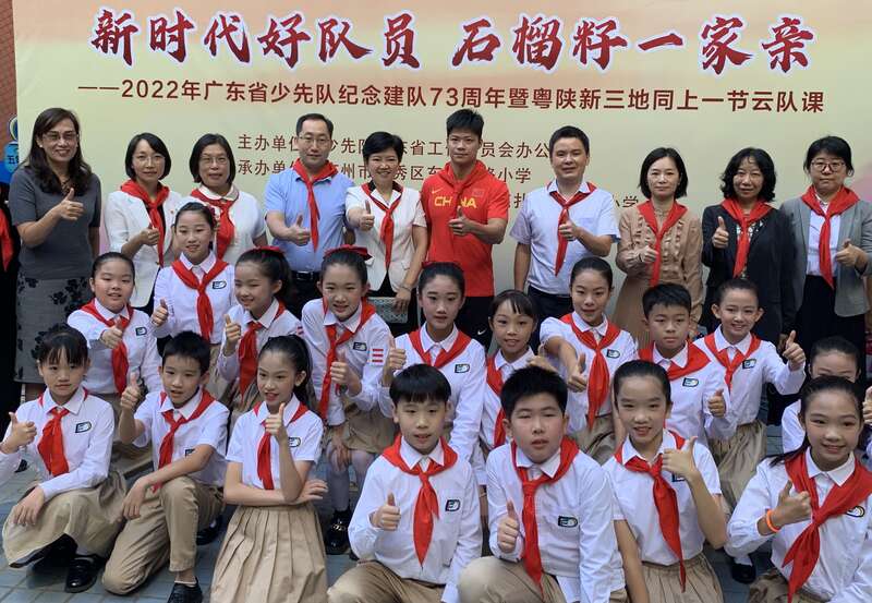 中国青年报客户端广州10月11日电(中青报·中青网记者 林洁)今天,少先队校外辅导员——“亚洲飞人”苏炳添来到广州市越秀区东风东路小学,与来自广东广州、延安革命老区、新疆喀什地区的少先队员代表同上一节“云队课”。当天,“新时代好队员、石榴籽一家亲”——2022年广东省少先队纪念建队73周年活动举行。