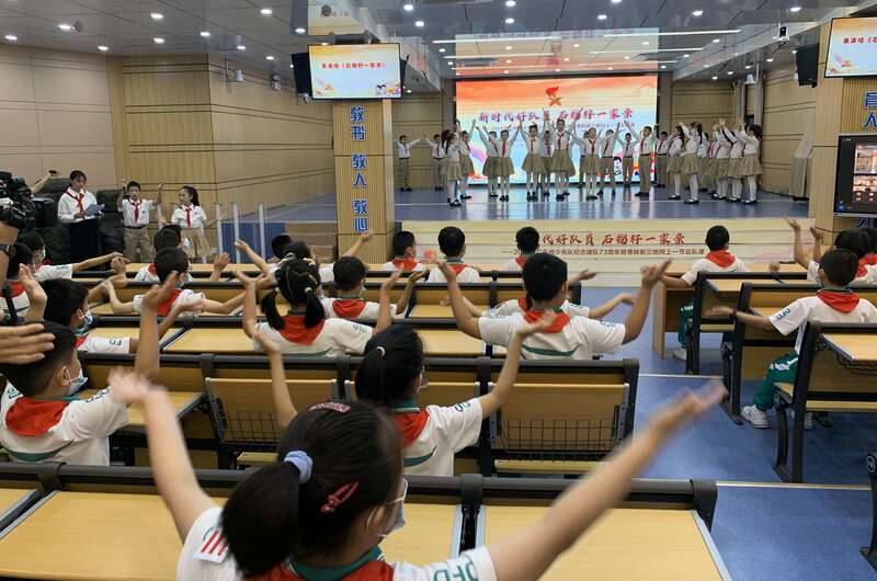 通过“云端”,三地的少先队员共同唱响了广东省少工委的原创歌曲《石榴籽一家亲》;由少先队员参与编排和演出的原创红色儿童剧《旗帜》,生动演绎了少年儿童在不同时期保护自己的旗帜,让红色基因代代相传的感人故事。活动中,AI虚拟机器人“元老师”以校外辅导员的身份,带领三地少先队员沉浸式云游祖国,见证新中国近10年来的发展成就。随后,队员们把自己的梦想写下来发到“元宇宙”,形成“元宇宙”梦想墙。