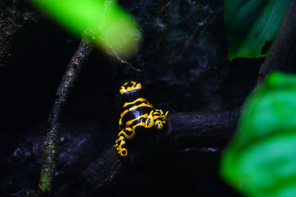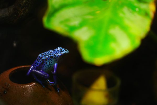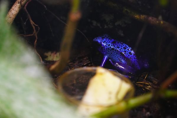 2022年10月10日,北京动物园两栖爬行馆内箭毒蛙亮相。箭毒蛙是两栖动物中极具代表性的物种,它们不仅拥有美丽的外表,还带有致命的毒性,因此也被称为“魔鬼中的天使”。此次箭毒蛙展区展出的有钴蓝箭毒蛙、染色箭毒蛙及黄带箭毒蛙共三种。值得一提的是,2021年北京动物园救护的箭毒蛙和今年繁育的小宝宝与游客见面了。经过饲养技术人员的不懈努力,箭毒蛙今年实现了国内人工饲养条件下首次繁育成活。