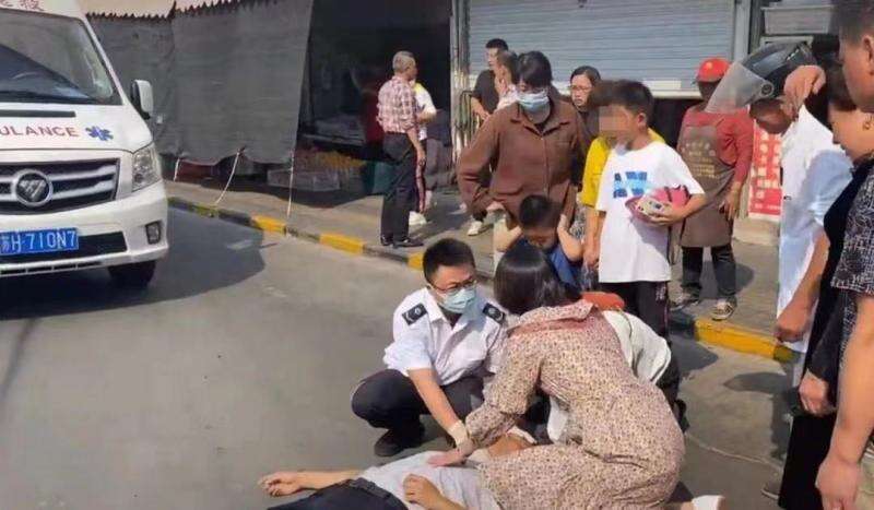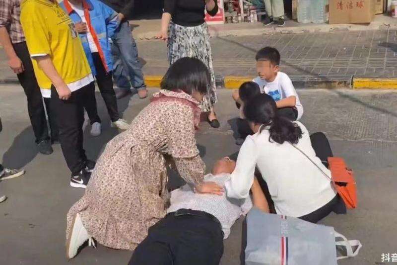 10月1日下午2点多钟,肖芙蓉骑车路过淮安市区淮海路菜场,看到有人围观和呼救,便急忙停下车查看。现场,肖芙蓉看见一名中年男子倒地不起,家属正焦急地拨打120。她立即跪下检查,当时男子神志不清,呼之不应,呼吸微弱,地面有较多血迹,探查颈动脉能摸到搏动。她一边注意观察男子是否有心跳呼吸,一边注意处理他的口腔分泌物,以免引起窒息。