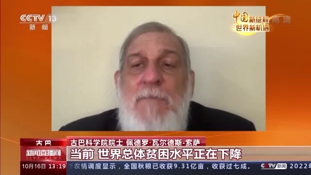 古巴科学院院士 佩德罗·瓦尔德斯-索萨:当前,世界总体贫困水平正在下降,世界贫困人口正在减少,正是由于中国共产党、中国政府和人民的努力,让如此规模的人口在短时间内摆脱了贫困,这无疑要归功于中国共产党的领导。