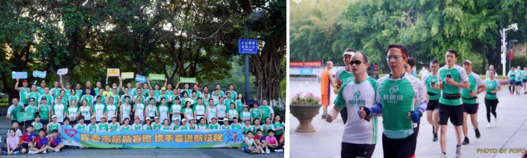 广东茂名心shine残健共融跑团于2016年成立,2018年荣获第四届中国青年志愿服务项目大赛金奖。项目由视障青年王俊和广东石油化工学院青年教师张乾坤共同发起,目前已组织300余场日常助盲跑,累计服务视障人士600余人,超过6000名大学生参与。今年,他们开始复制推广项目模式,联手内蒙古巴彦淖尔蒙L残健共融助盲跑团、广西人民医院“光之使者”志愿服务队开展助盲跑,并在今年10月分别举办了首次活动,得到盲友的热烈响应及咨询报名。广西盲人协会主席陶进谈到,盲人没人带领的情况在外面跑有较大的的安全隐患,助盲跑志愿服务可以在志愿者的帮助下完成,更加安全方便,很多盲友愿意积极参加。