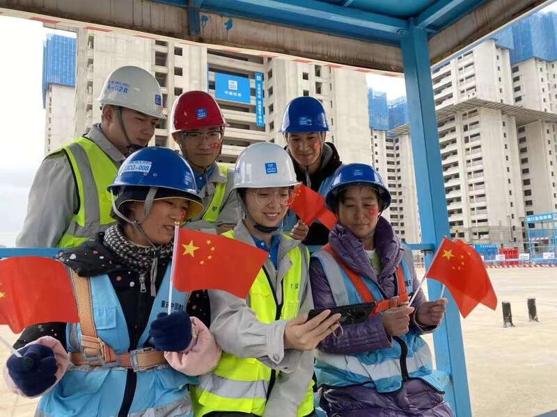 中建二局云南分公司青年职工在工地收看党的二十大开幕会