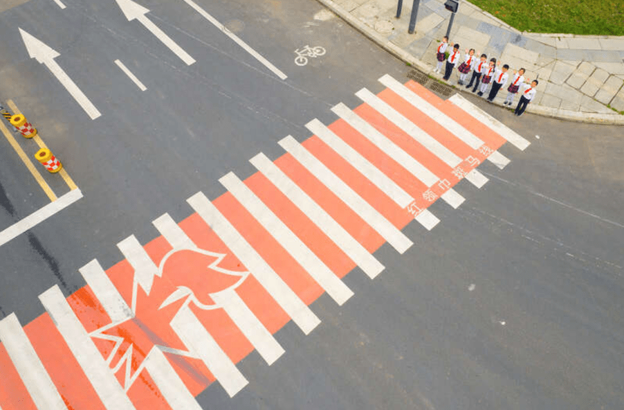 10月13日是中国少年先锋队建队73周年纪念日。当天,四川省成都市龙泉驿区大面街道好日子社区和成都市龙泉驿区上东学校的4条斑马线换上了新装:在传统斑马线的基础上,增加了红色,还有“星星火炬”图样。