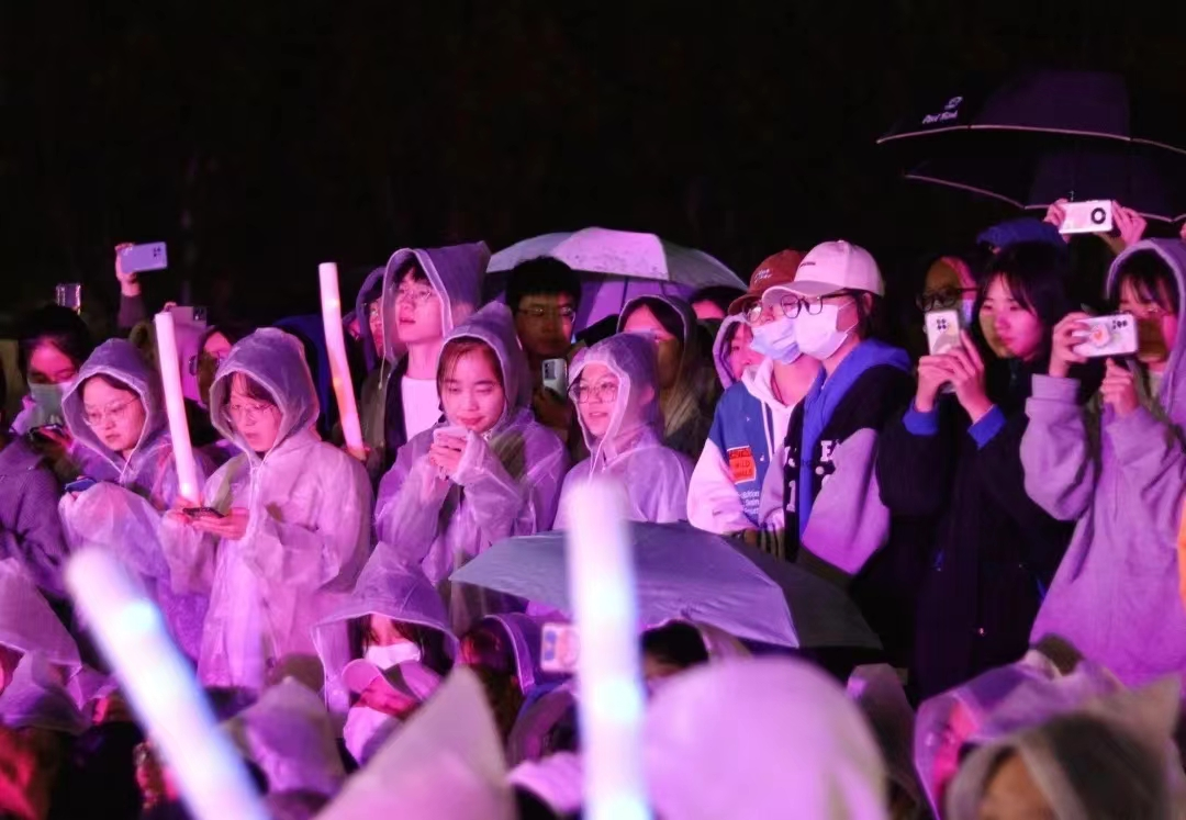 细雨在束束聚光灯的照射下汇成一片片璀璨的星河,“星河”下的焦点是草地上正在演出的摇滚乐队。“这是一场没有结局的表演……”场下观众跟随音乐节奏挥动着手中的荧光棒。这不是一票难求的音乐节,而是河南师范大学系列活动之一的草地音乐会!