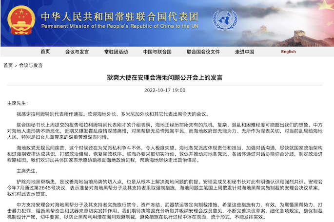 原题为《耿爽大使在安理会海地问题公开会上的发言》